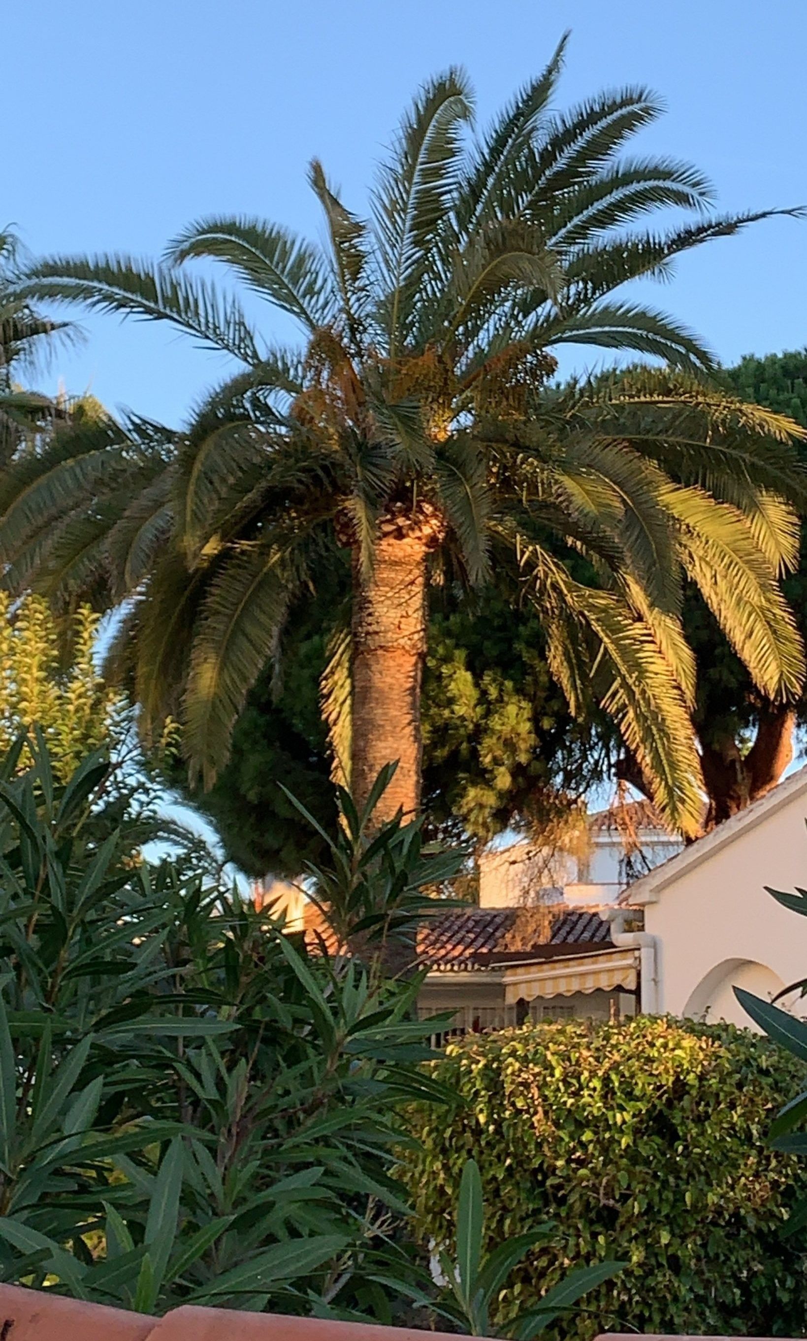 Evolución de las hojas tras un mes de recuperación. Se aprecia el crecimiento de las hojas y el color verde característico de las hojas de la palmera.
